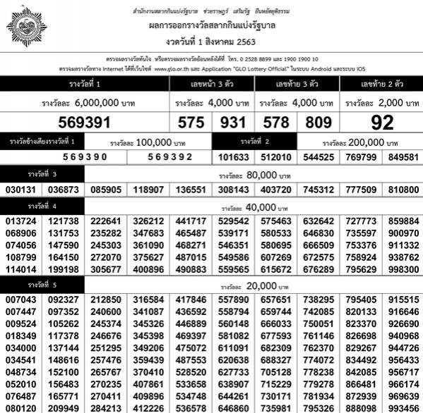 ตรวจผลสลากกินแบ่ง : à¸à¸£à¸§à¸à¸à¸¥à¸ªà¸¥à¸²à¸à¸à¸§à¸"ว à¸à¸ 1 ม ย 63 à¹à¸à¸ªà¸ ภà¹à¸"ย à¸à¸£à¸§à¸à¸à¸¥à¸ªà¸¥à¸²à¸ / 64 ผลสลากกินแบ่งรัฐบาล งวด 16 ก.พ.. X เช็กผลสลากกินแบ่งรัฐบาล อัปเดตจากกองสลาก ตรวจห … 316827 731177 743731 788652 923096. ตรวจผลสลากกินแบ่งรัฐบาล รางวัลที่ 4 จำนวน 50 รางวัล รางวัลละ 40,000 บาท. 376832 027316 203361 243453 027506. ตรวจผลสลากกินแบ่งรัฐบาล ตรวจหวย งวดประจำวันที่ 16 มีนาคม 2564 รางวัลที่ 1 รางวัลละ 6,000,000 บาท